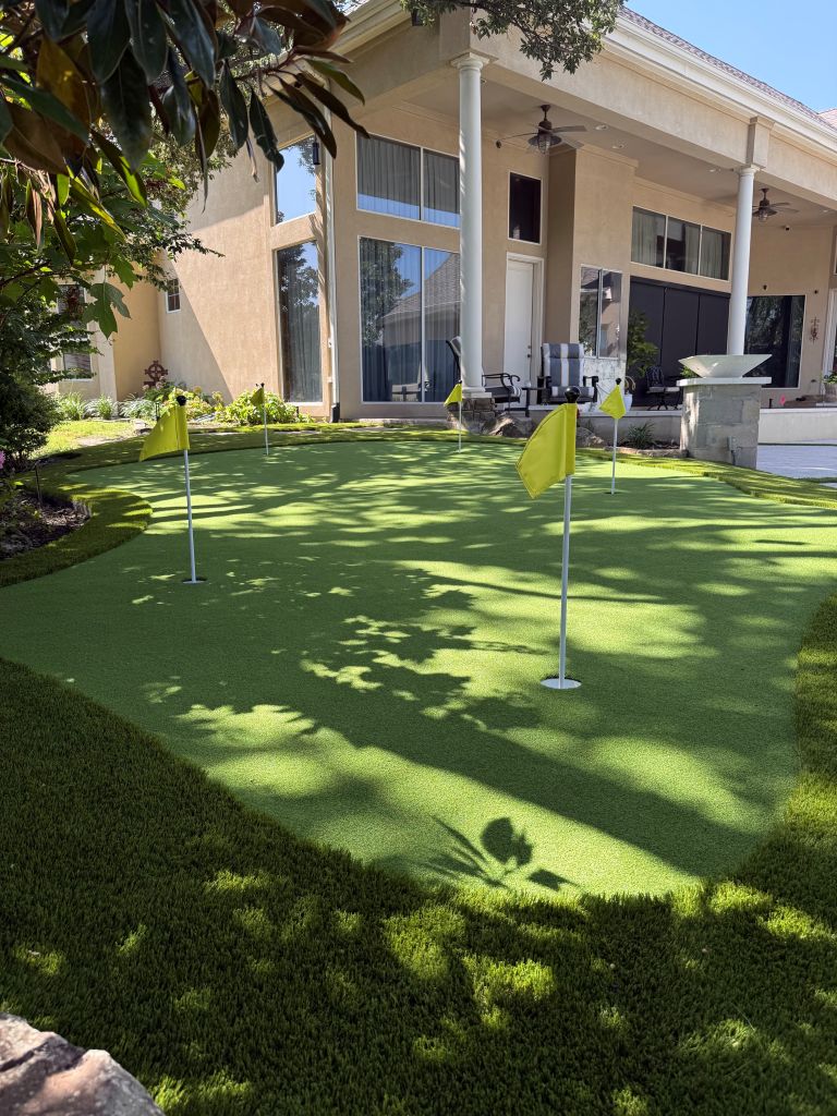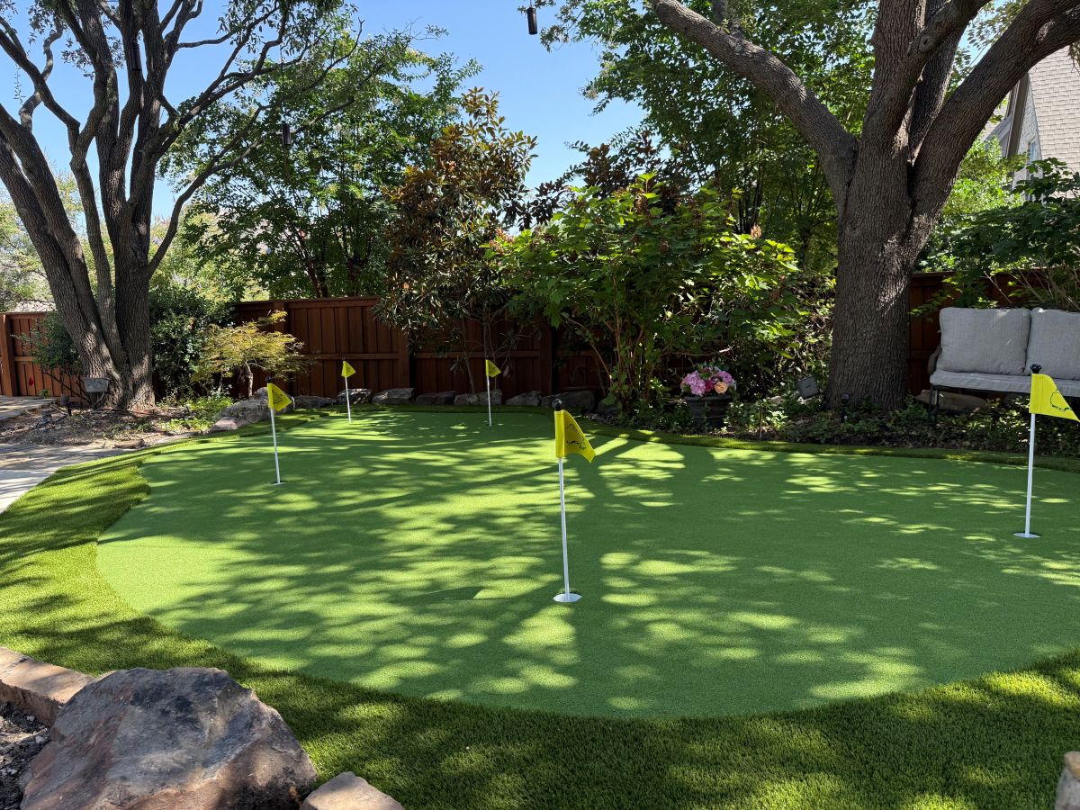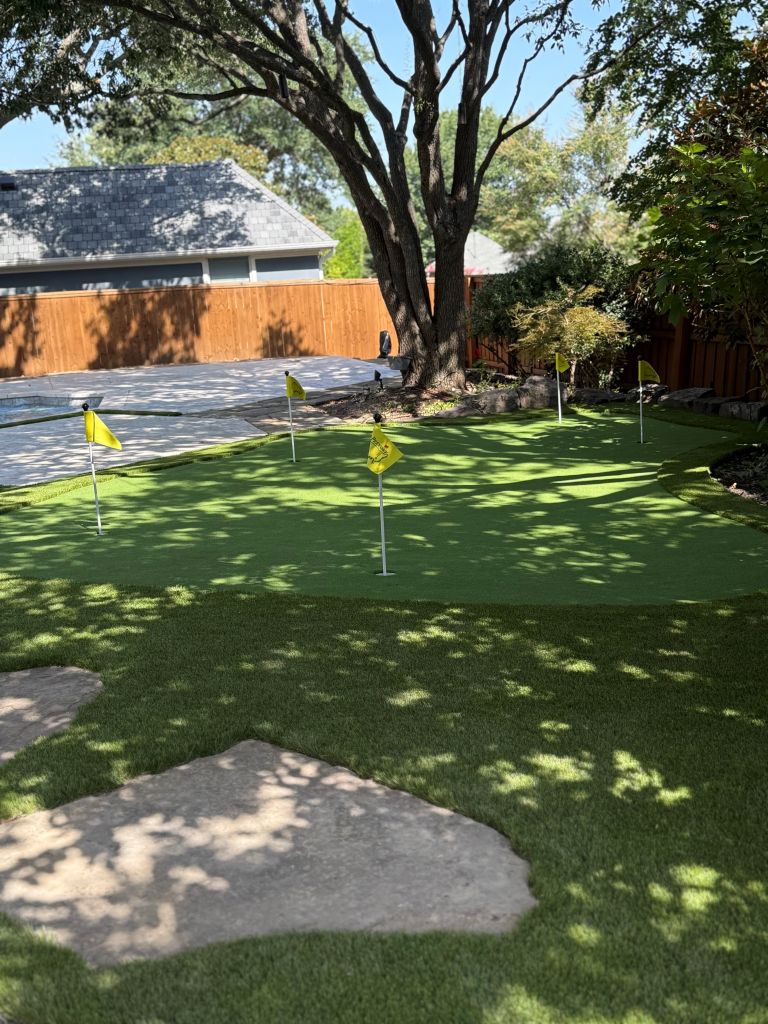 This stunning installation by Turf Layers showcases our commitment to enhancing the beauty and functionality of residential spaces in McKinney, TX. Located in the well-established and scenic Wellington Point neighborhood within the Stone Ridge Ranch Master Plan community, this project was part of a complete pool remodel. The transformation included the addition of a luxurious putting green and complementary turf strips, blending seamlessly with the outdoor features to create an elegant, low-maintenance recreational area perfect for practice and relaxation. Turf Layers wants to provide you with a lifestyle change that gives you a daily dose of resort living so that you can thoroughly enjoy what is just right outside your door. A Barefoot friendly space that all ages can immediately enjoy without the prep work and maintenance, Contact Turf Layers today to get your project started.