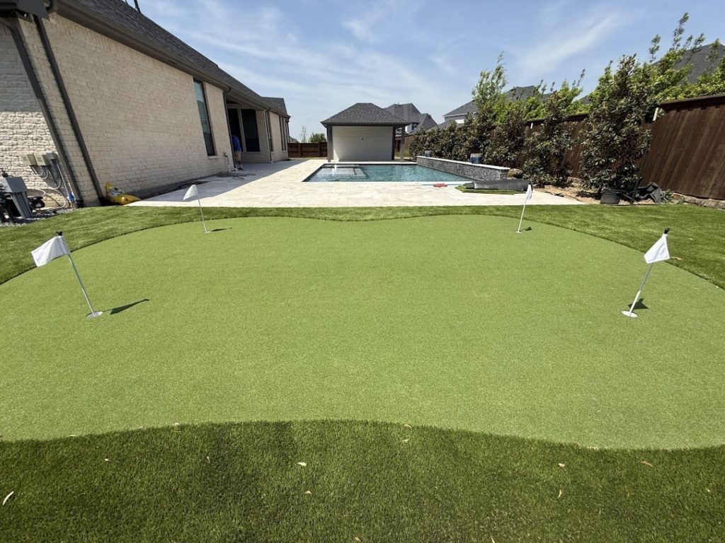 Creating the perfect backyard retreat in Mustang Lakes starts with a vision of comfort, style, and year round enjoyment. This Celina project showcases a beautifully designed outdoor space featuring premium turf that delivers a lush, low maintenance finish. Built for both relaxing and entertaining, it offers a seamless blend of function and elevated design. Contact our team today to start planning your own backyard transformation.